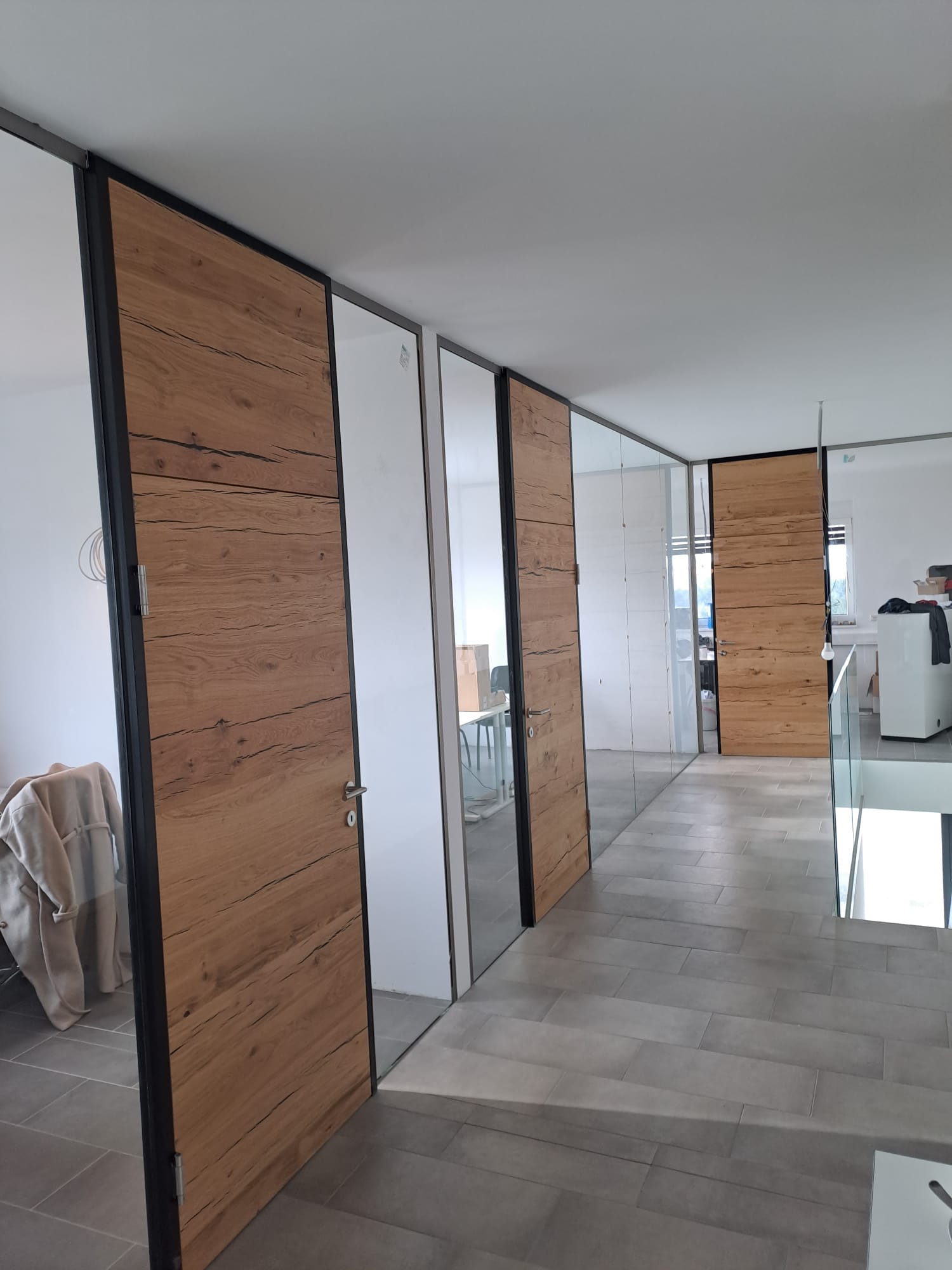 Bei Familie S. wurde das gesamte Treppenhaus nach Ihren Wünschen gestaltet. Als erstes wurde die Treppe aus Echtholz Parkett verlegt. Darauf folgte in Zusammenarbeit mit meinen Partner, die Montage des Glasgeländers. Abschließend wurden noch die vom Kunden speziell gewünschte Holz Raumteiler montiert.